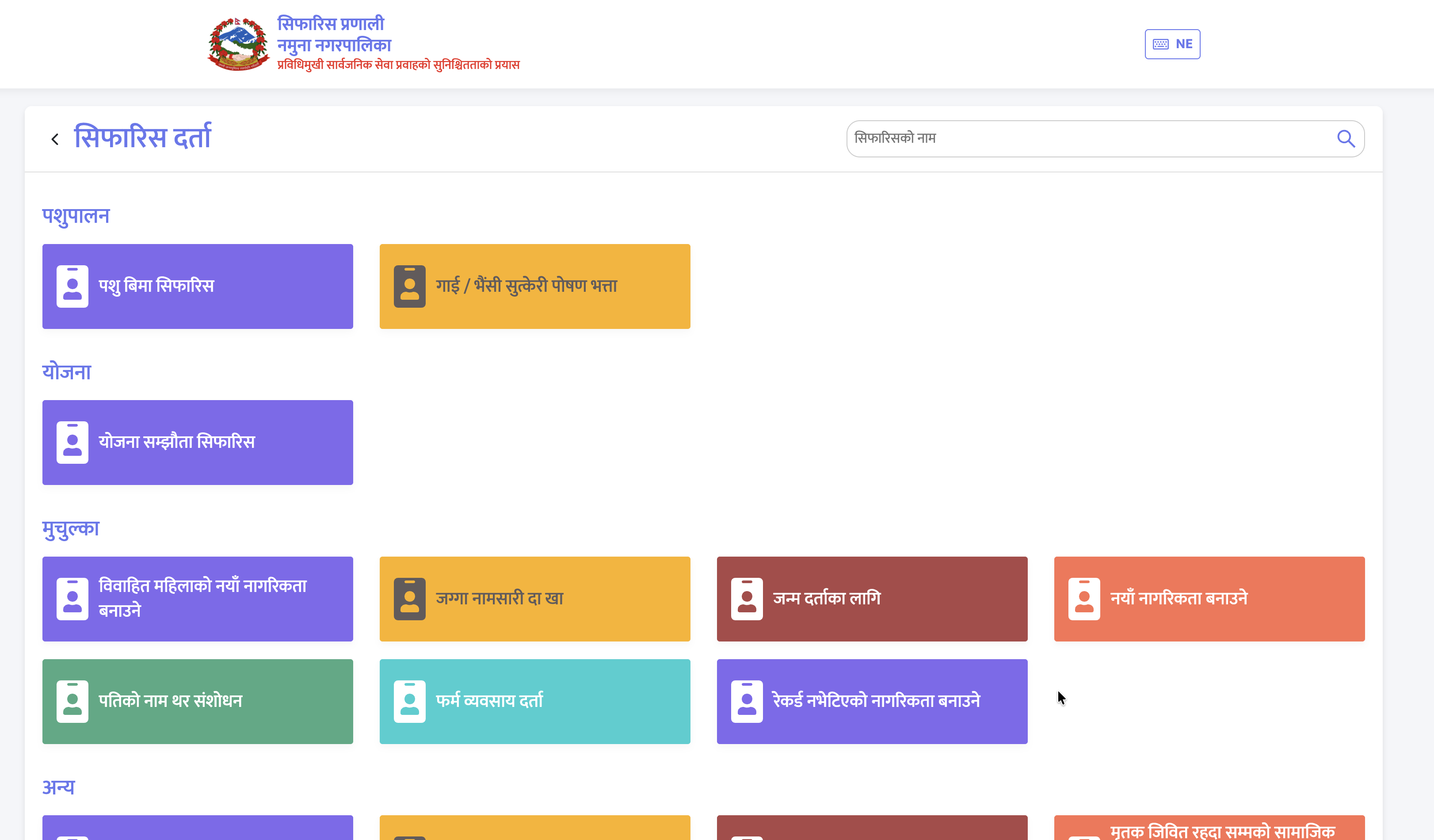 A Digital Sifarish (Recommendation) System to digitize local government services in Nepal for municipalities and wards. The system enables online applications for documents, status tracking, certificate verification, and ward-specific services.